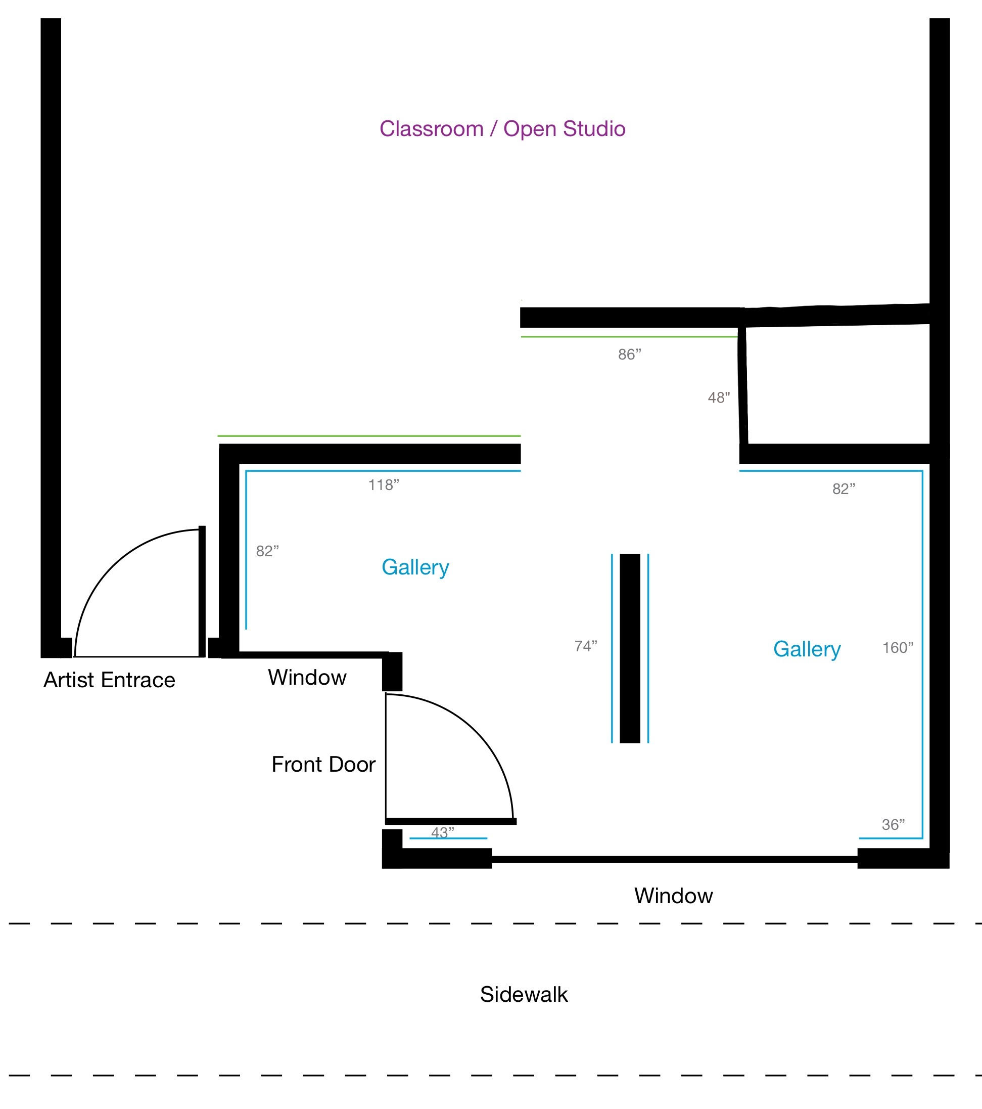 To submit a proposal, the curator or artist(s) should carefully review our gallery specifications. A tour of the gallery is encouraged in order to tailor the proposal to our unique space. Gallery dimensions are available below.